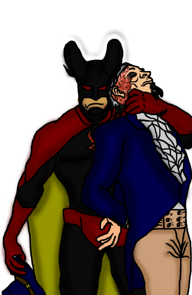 Monseñor Patrick Muñoz vestido como el Buitre Gris (Ilustración de CHAnticristo)