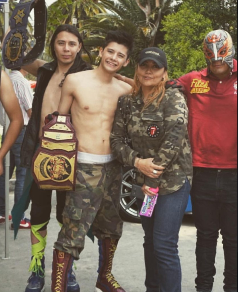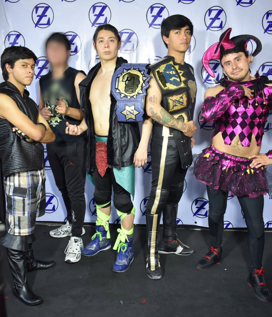 DrAgonfire Alex, CHAnticristo, Dra VIPR, junto a su maestro de Lucha Libre Profesional, Tony Salazar
